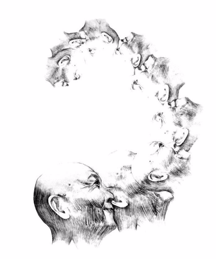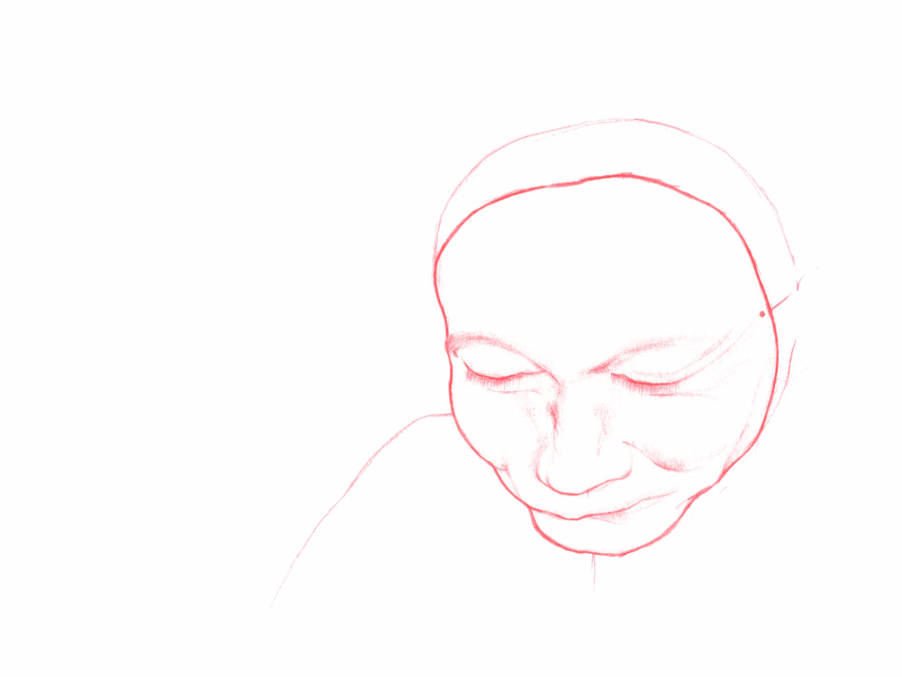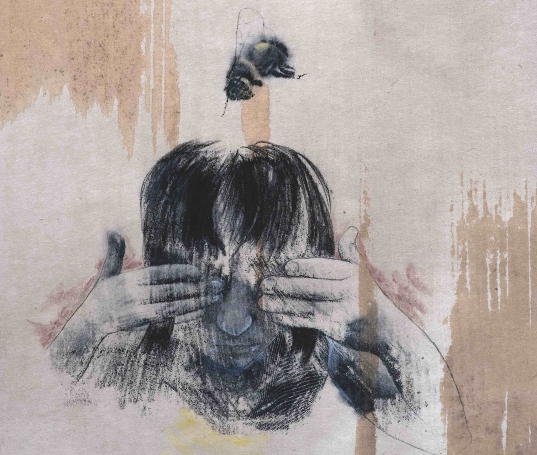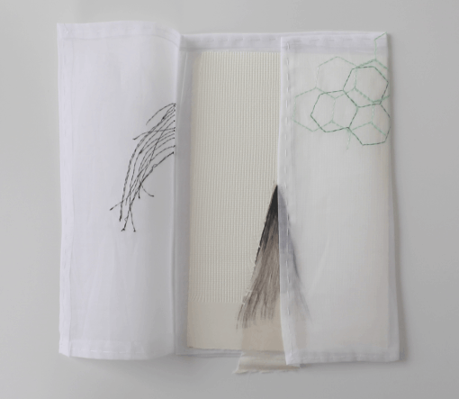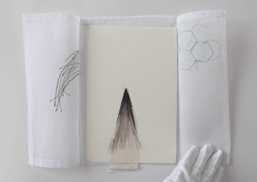 While contemplating the effects of the disaster, she resolved to draw the infinite with cherry blossom ashes.